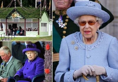 The Braemar Gathering is set to get underway today but, despite the event being a favourite of the Royal Family, the Queen will not be in attendance due to concerns for her mobility. Pictured: The Queen opens a new building at Thames Hospice in Maidenhead, Berkshire, on July 15, 2022 (left); and attends an Armed Forces Act of Loyalty Parade on June 28 (right)