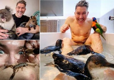 This man really is in the bath with penguins – and they are part of a menagerie of 2,000 animals he lives with – including crocodiles, snakes and the world’s most dangerous birds