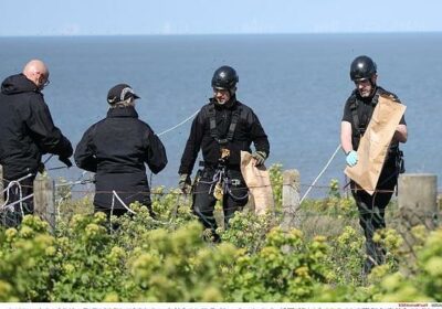LeicestershireLive reported that police quickly linked Mrs Solanki’s death to the discovery of critically injured Mr Solanki on the Norfolk coast. Pictured: Police at Hunstanton after Solanki jumped off the cliff