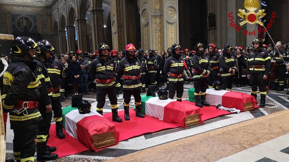 On Friday, funerals were held for the firefighters, identified as Marco Triches, Matteo Gastaldo and Antonino Candido. The fire service shared video of fellow firefighters carrying the three caskets at the cathedral.