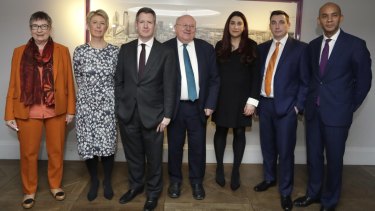 Seven MPs from left, Ann Coffey, Angela Smith, Chris Leslie, Mike Gapes, Luciana Berger, Gavin Shuker and Chuka Umunna.Credit:AP