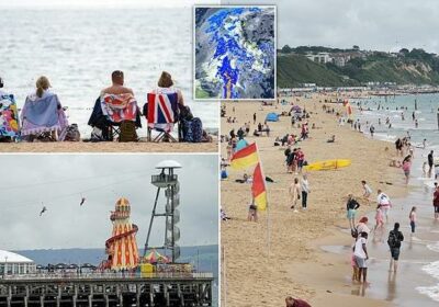 A beach in Bournemouth, Dorset, appears fairly busy today despite the soggy outlook. The Met Office’s Simon Partridge predicted up to 1.6in (40mm) of rain could hit parts of Northern Ireland and south-west England over 24 hours tomorrow