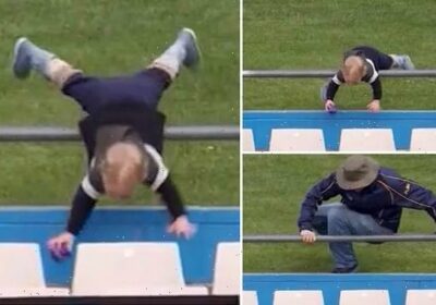 Moment young Scottish cricket fan tumbles head first onto concrete