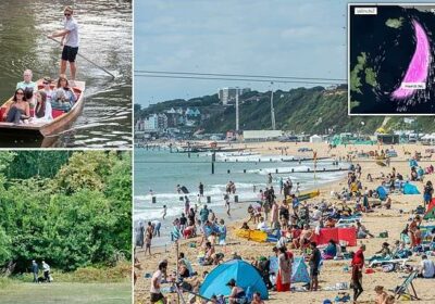 Bournemouth beach in Dorset was packed full of families soaking up the sunshine on the last day of August, while tourists enjoyed clear skies and balmy temperatures while doing a spot of punting on the River Cam in Cambridge on Wednesday.
