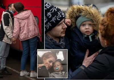 Mothers and young children have been waving farewell to their loved ones they are forced to leave behind as they flee Ukraine amid the chaos caused by Russia’s invasion.