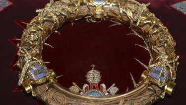 The crown of thorns which was believed to have been worn by Jesus Christ and which was bought by King Louis IX in 1239 is presented at Notre Dame Cathedral in Paris.Credit:AP