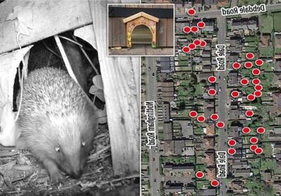 It all began during the pandemic when Ms Manning-Ohren realised hedgehogs faced their own lockdown. She told The Mail on Sunday: ‘Hedgehogs are good runners and travel a mile each night, but we are stopping them doing this with our big fences.