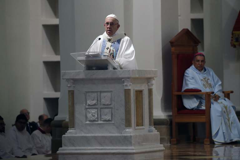 Francis made the comment in the homily of Mass for priests, nuns, and members of Catholic lay organisations in Panama City's newly renovated cathedral of Santa Maria Antigua, the first in mainland America, which was completed in 1716.