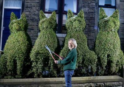 Retiree proves nothing is impawsible by cutting hedge into four cats