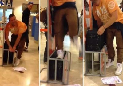 Ridiculous moment easyJet passenger tries to prove his hand luggage isn't too big… with hilarious results