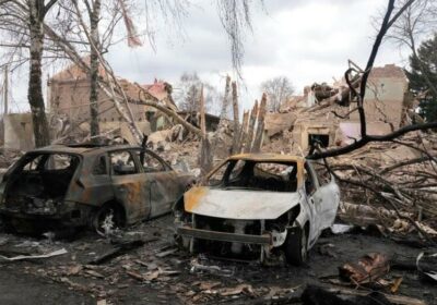 Photographers captured destruction in the village of Bushiv, about 40 kilometers to the west of Kyiv.