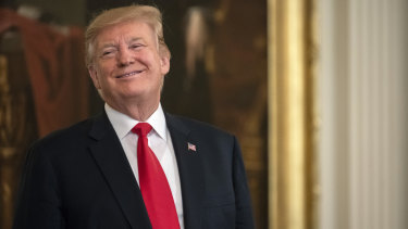 US President Donald Trump smiles at a White House event shortly after the release of the redacted Mueller report. Credit:Bloomberg