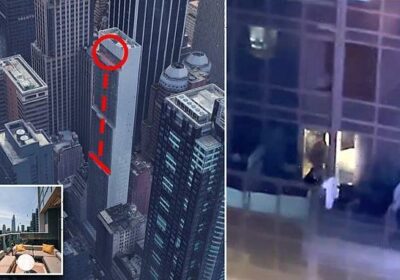 Onlookers were horrified to see a woman jump from a Times Square rooftop bar. The 26-year-old landed on a balcony 27 floors below and was pronounced dead on the scene. Medical examiners are seen removing the woman’s body